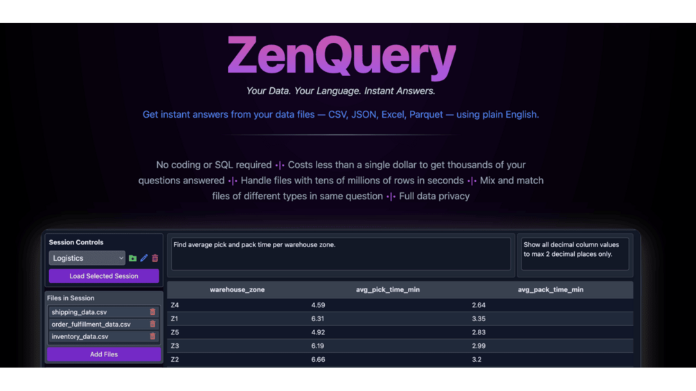 Get instant answers from your data files — CSV, JSON, Excel, Parquet — using plain English.